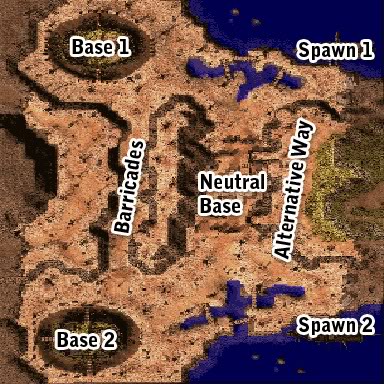 •The shortest path between the two bases is blocked by destroyable Barricades.