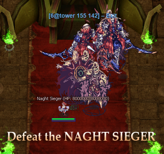 The Endless Tower is an increasingly difficult set of challenges. Participating parties make their way up the 100-floor tower, with a special boss encounter against Entweihen Knothen on the 100th floor, and Naght Sieger afterwards. It is a raid where you need to pass through a tower with 100 floors (plus an extra room), where the higher the floor, the stronger the monsters. To go up the floors it is necessary to eliminate all the monsters on the map (taming a monster will cause you to be unable to proceed to the next floor) Right after that, the portal to the next floor will appear. The tower announce how many monsters are left to be eliminated as they are being killed. After going up one floor the player cannot return to the previous one unless he leaves the tower.